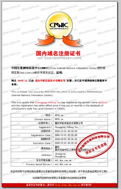 華夏餐飲域名證書