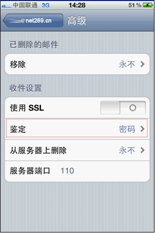八、iPhone雖然默認(rèn)的鑒定方式是“密碼”,但是實(shí)際上系統(tǒng)中使用apop方式,所以一般用戶設(shè)定好以后無法使用,可以先改變一種鑒定方式(如MD5等)并確定,再選回“密碼”方式,此時(shí)的iPhone就可以正常使用了。